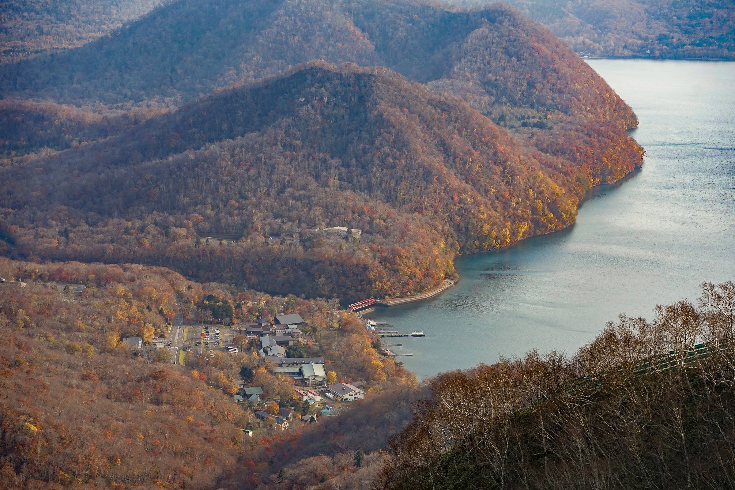 Today you hike Mt. Monbetsu, an 866m peak bordering Lake Shikotsu. The trail gently climbs a maintenance road to the summit, where panoramic views of Lake Shikotsu and its surrounding volcanoes - Mt. Eniwa and Mt. Tarumae - await.
