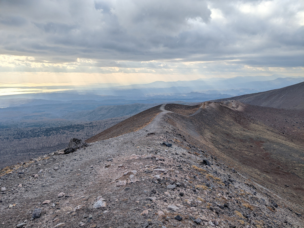 For our final day on the trails, we have saved the tour's most challenging hike. We climb Mt. Tarumae (7.4km), an active volcano looming over Lake Shikotsu. The initial ascent gets the heart pumping, but the stark, vegetation-free landscape offers the potential for sweeping views of the lake and the Pacific Ocean on clear days. As we traverse the summit cone, we witness the volcano's power through its steaming vents and imposing lava dome
